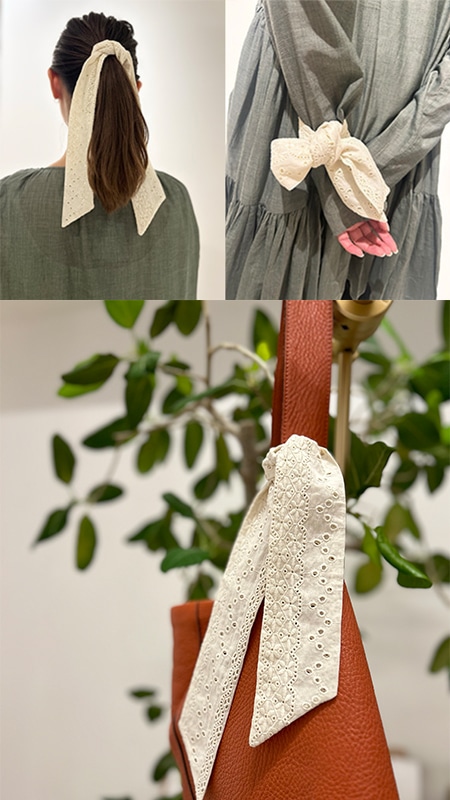 ヘアアレンジに使用したり、コーディネートやバッグのポイントなどにお使いいただけます。