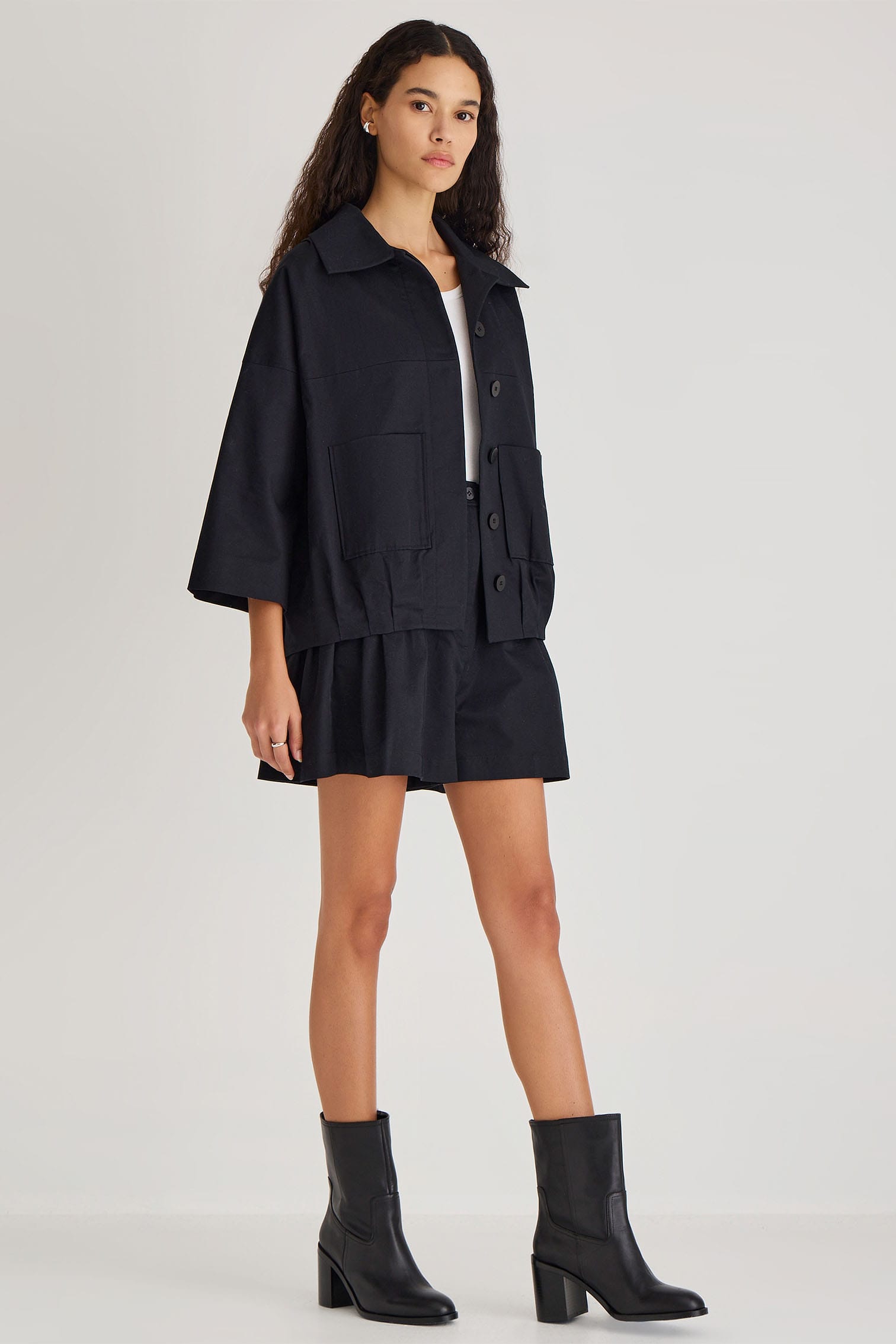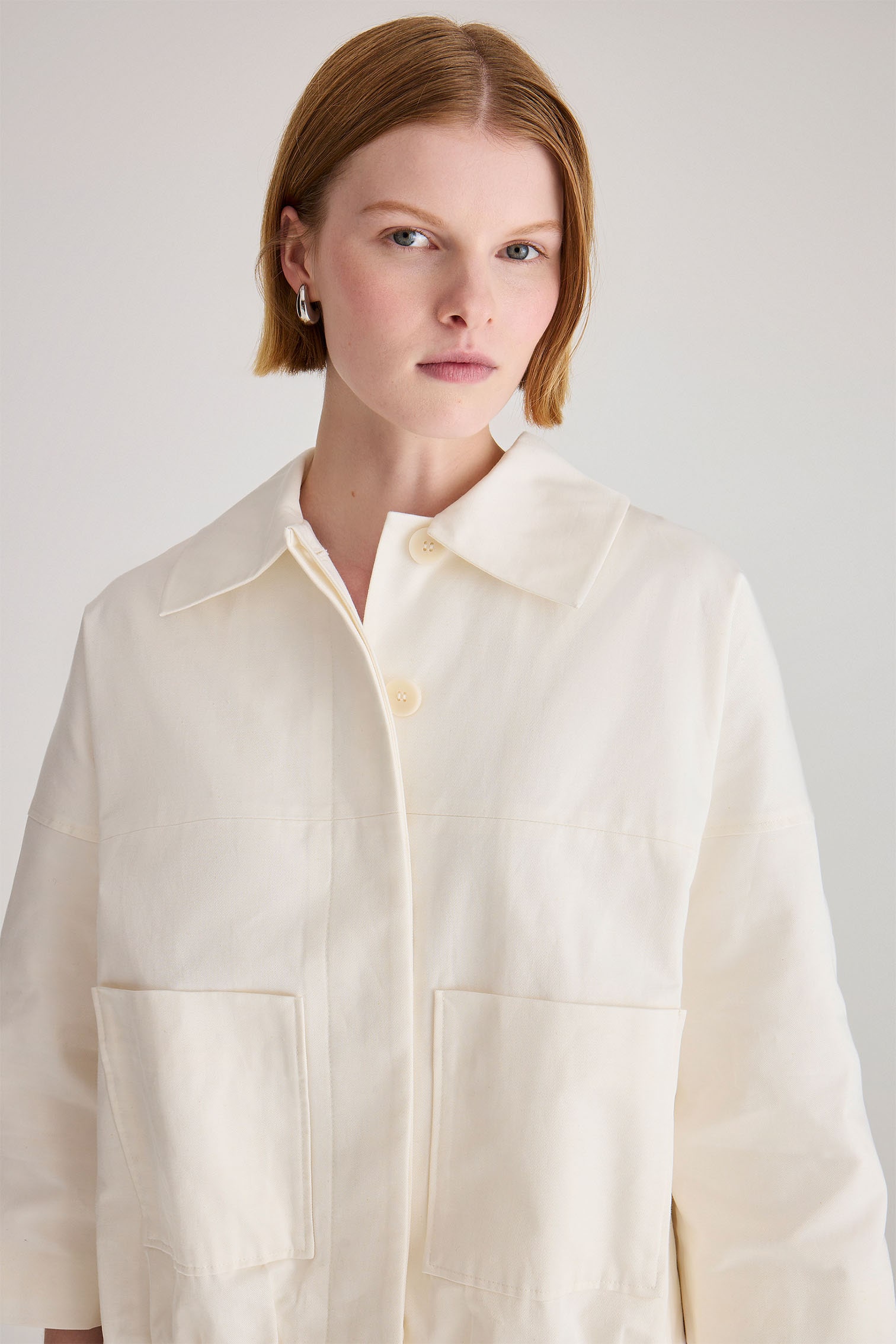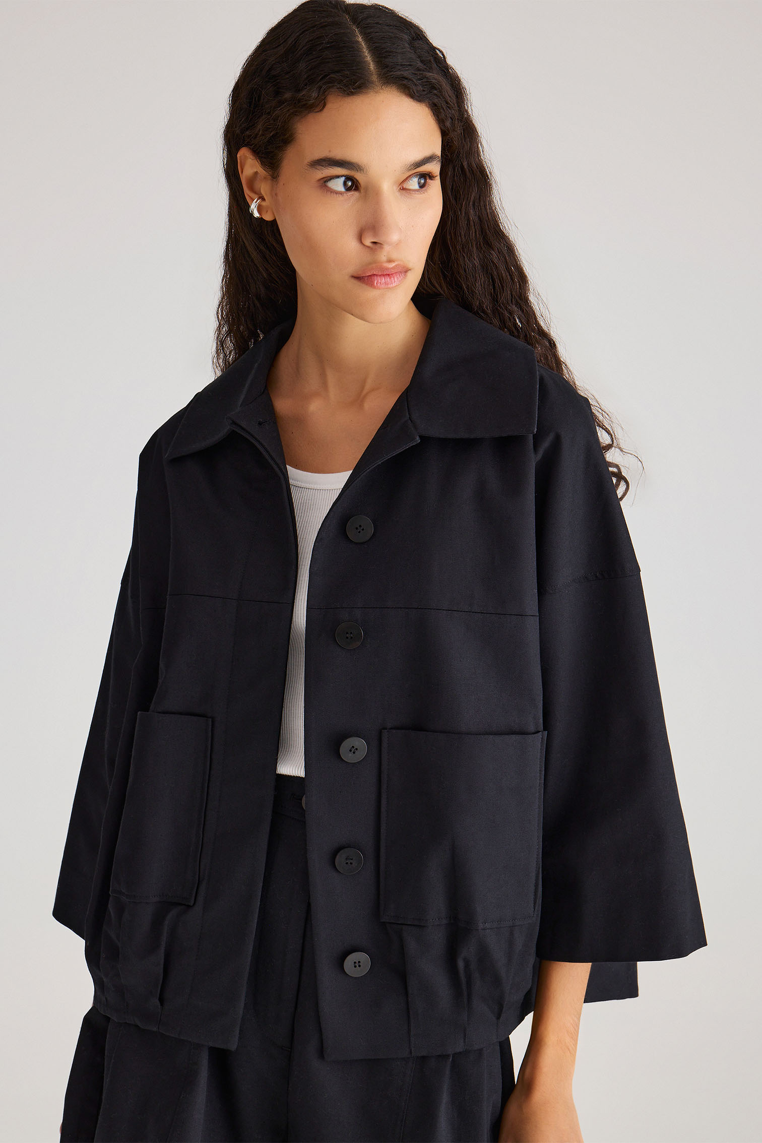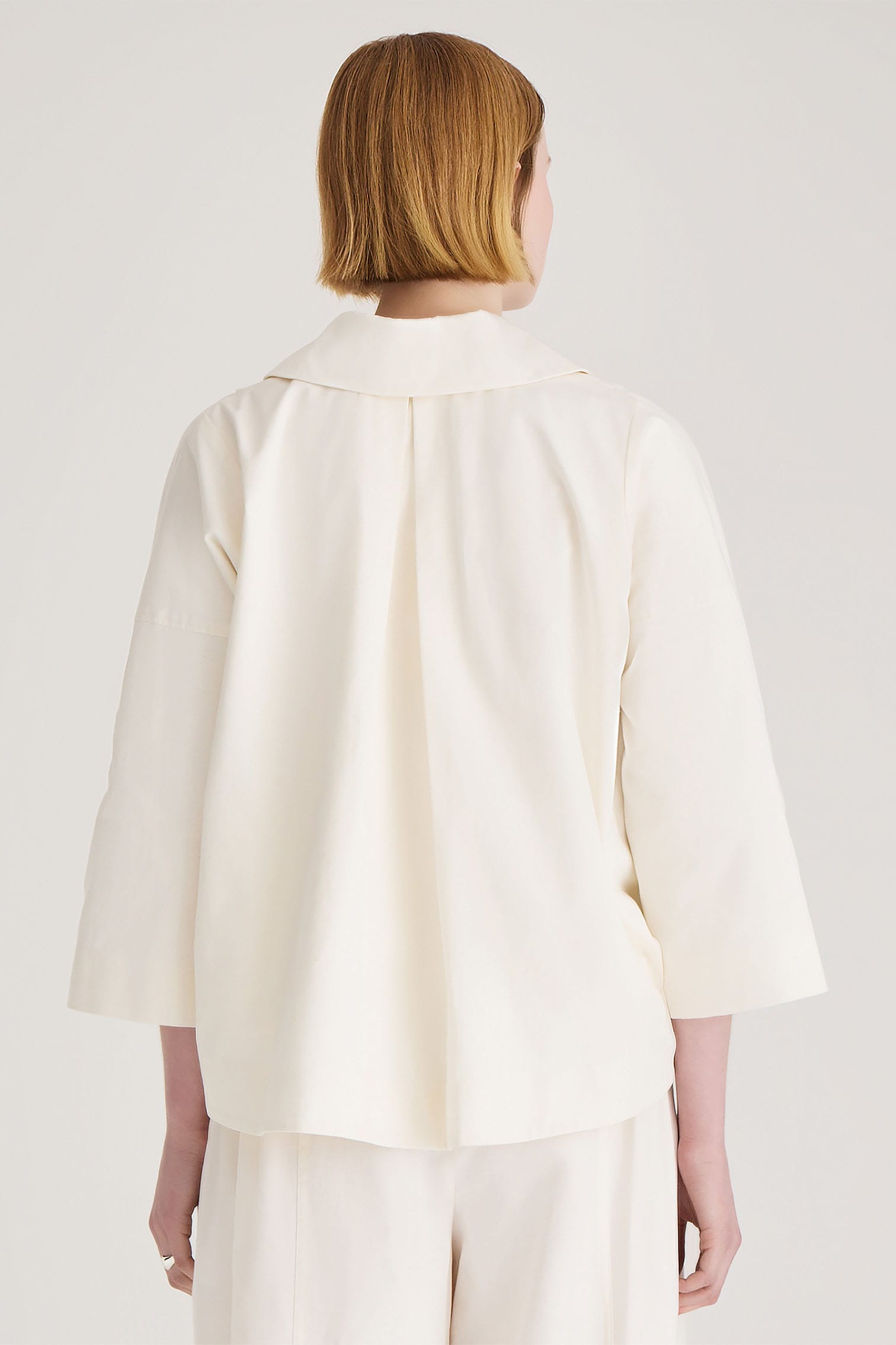 クラシックなシルエットに現代的なエッセンスを加えたSOLARA JACKET(ソララ)。大きめの襟が顔回りをすっきりと見せ、裾のタックや背中のプリーツがさりげない動きをプラス。少し短めの袖丈がポイントです。コットンとリネンの混紡素材にコットンサテンの裏地を施した仕立てで、着心地もデザインもこだわり抜いた一着です。デイリーにも特別な日にも、あなたの装いに品よく寄り添います。