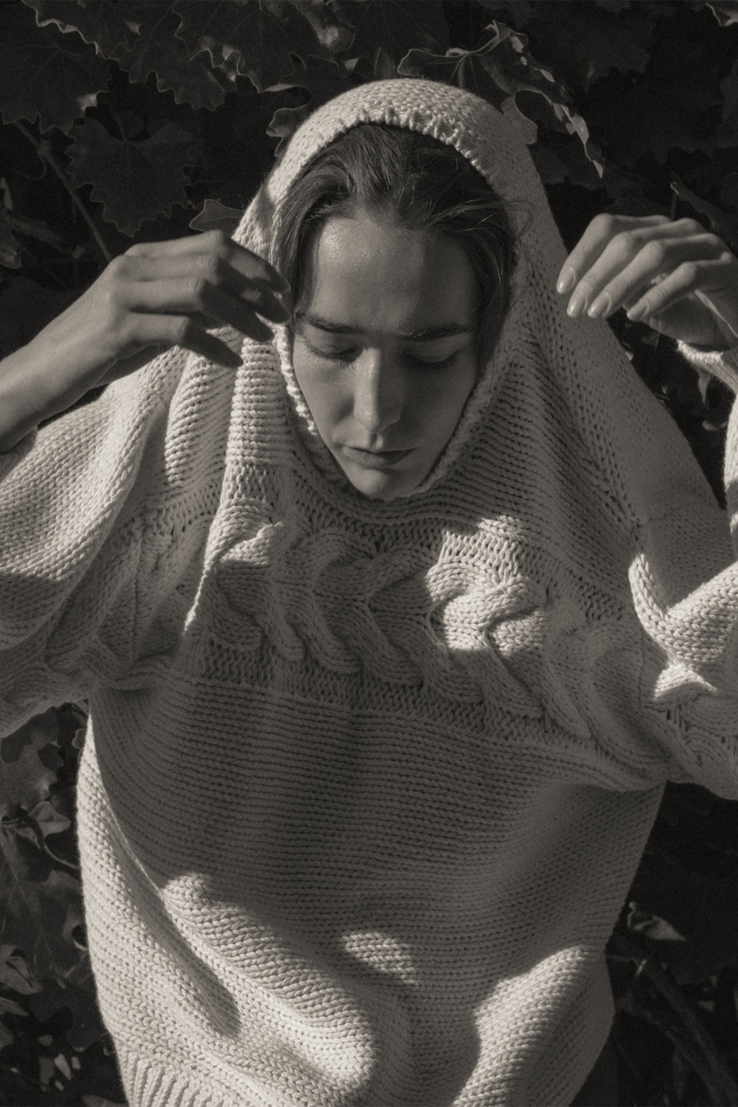 SERIN KNIT(セリン)は、デイリーに活躍するベーシックなデザインのニットです。100%ピマコットン糸を使用し、肌触りがよく通気性にも優れています。複雑なケーブル編みが立体感を生み出しシンプルながらも上品な印象に。ネックライン、袖口、裾はリブ編み仕上げで快適なフィット感とすっきりとしたシルエットを実現。パンツやスカート、ドレスなどのレイヤードにもぴったりの万能なニットです。